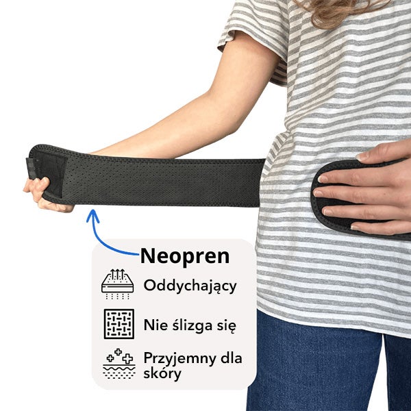 Pas powinien być mocno zaciśnięty, ale nadal wygodny. To, co stanowi komfort, różni się w zależności od osoby, dlatego zachęcamy do wypróbowania. Zacznij od lekkiego poluzowania pasa i sprawdź, jak łagodzi ból. Następnie możesz przetestować i zacisnąć go mocniej i sprawdzić, czy działa lepiej dla Ciebie!